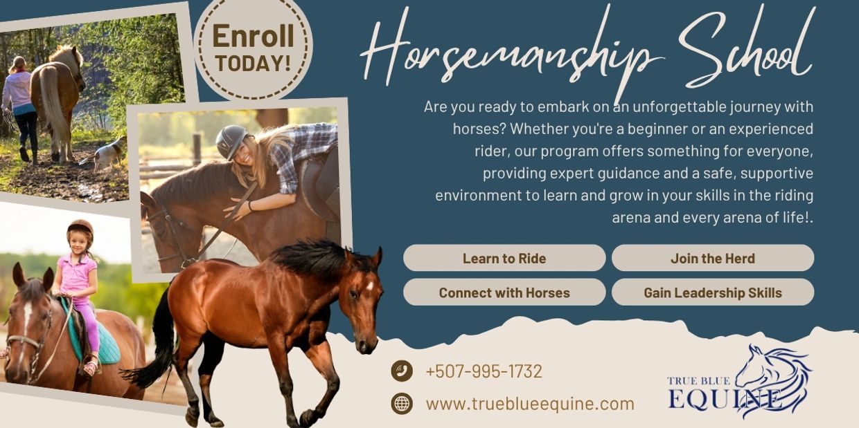 Our horsemanship school provides comprehensive instruction from highly-trained equine educators and coaches. We use a clear and progressive curriculum that includes both riding skills and handling skills to help students achieve their horsemanship goals. We offer a variety of class options for different levels and ages of riders! Each class has 2-4 riders per class.